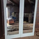 - 1.75″ x 72″ x 77.5″ dual glazed wood French doors $100. 32″x77″ dual glazed sidelights $35 each (you detach and remove)