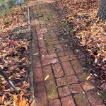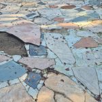 - 1083 sq ft of easy to pry up 1 5/8″ thick flagstone: mostly Arizona Red but other colors mixed in. The stone and mortar are laid over dirt so the stone is extremely easy to pry up. $2.25//sqft ( you detach and remove) price goes down to $2/ square foot if you buy all of it.