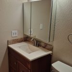 - 24″ 4 bulb vanity light $12, 30″ x 26″ wall mount two door medicine cabinet $20, 30″ corian counter top & vanity $30 (all you detach and remove)