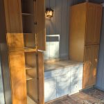 - 48x21x71 cabinet with doors on left$20 11×12×21 shelf next to that $10 30x20x84 corner shelf $12 71×31×12 upper cabinet $15 71×16×35 lower cabinet with tile top$30 (All you detach and remove)