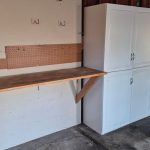 - 1 1 /8″ x 23x 71.5 butcher block shelf with bracec$40 2@ 48 x20x 80 storage cabinets$25ea or get both $40 ( all you detach & remove)
