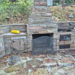- This whole outdoor stone kitchen would be easy to disassemble and reassemble in the same configuration! 17 ft wide kitchen: chimney is 50 x 36 x 75 tall. Mortar is not well attached to stone & so the the stones separate easily. Get all the stone for $300( you detatch and remove) BBQ Rack raises, lowers and pops out easily. $45. Upper ash iron cleanout is 19×11 $10. lower ash iron cleanout is 19×8 $45 The 3 doors are 13 5 x 19, 14 x19; & 16.75×19 $10ea The 40×30 freestanding fireplace screen $12 The iron log cradle is $15 Get this this whole kitchen for $400( you detach and remove)