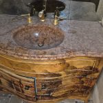 Atherton : 45×22.5 x 33 tall Bombay vanity with stone top & hand-painted landscape/scenery $450