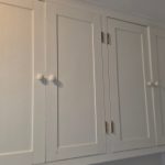 8 @ 1/2″ x 4.5 ” drawer pulls . Screws are 3″ o.c. $10