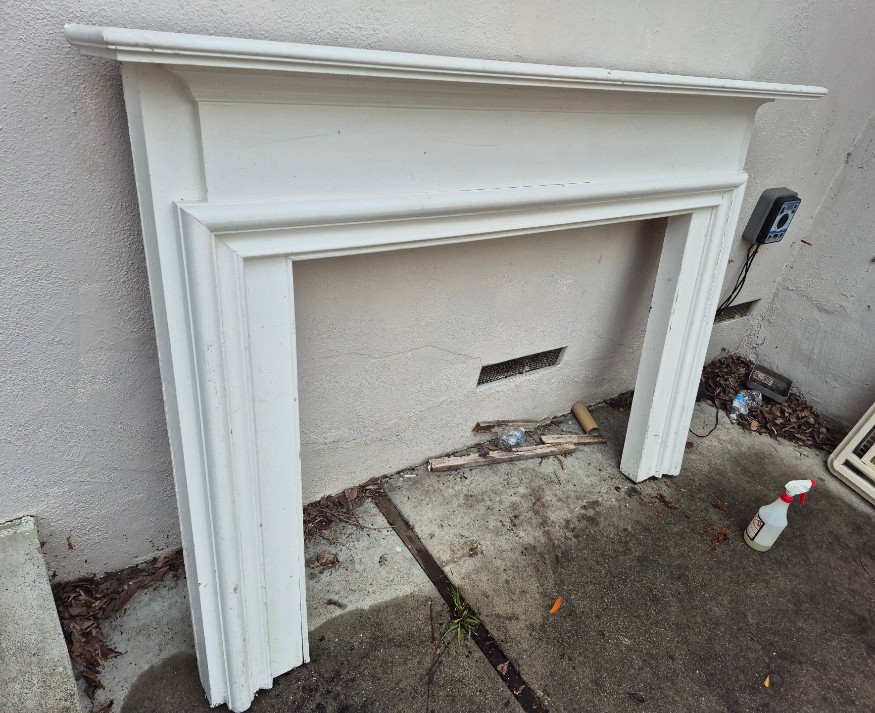 Wood mantel: Top is 65″ wide. height is 49″ tall m, opening is 45 5 x 35