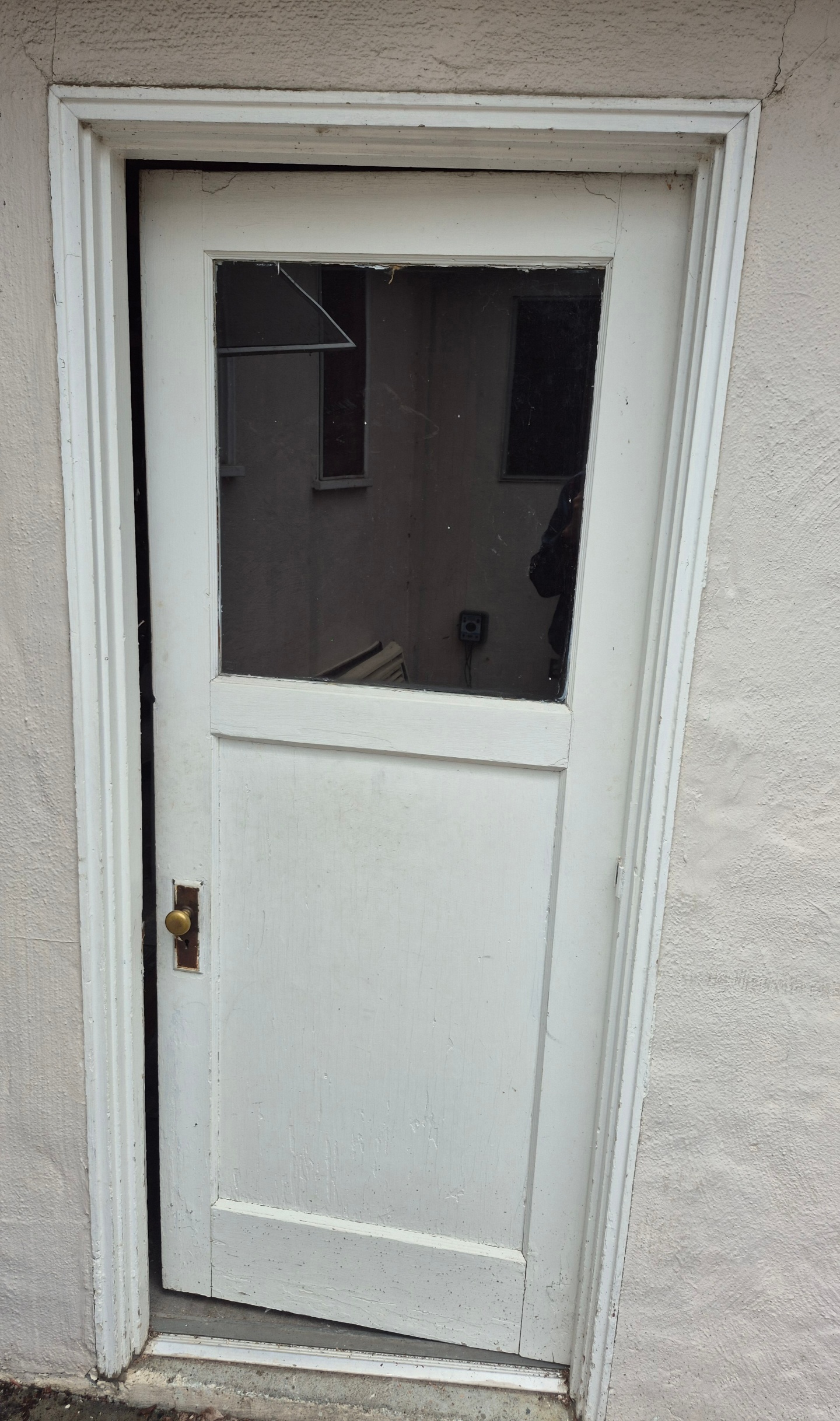 1 3/8″ x 32 x80 single glazed top light door with mortist lockset & jamb $65 (you detach and remove)3
