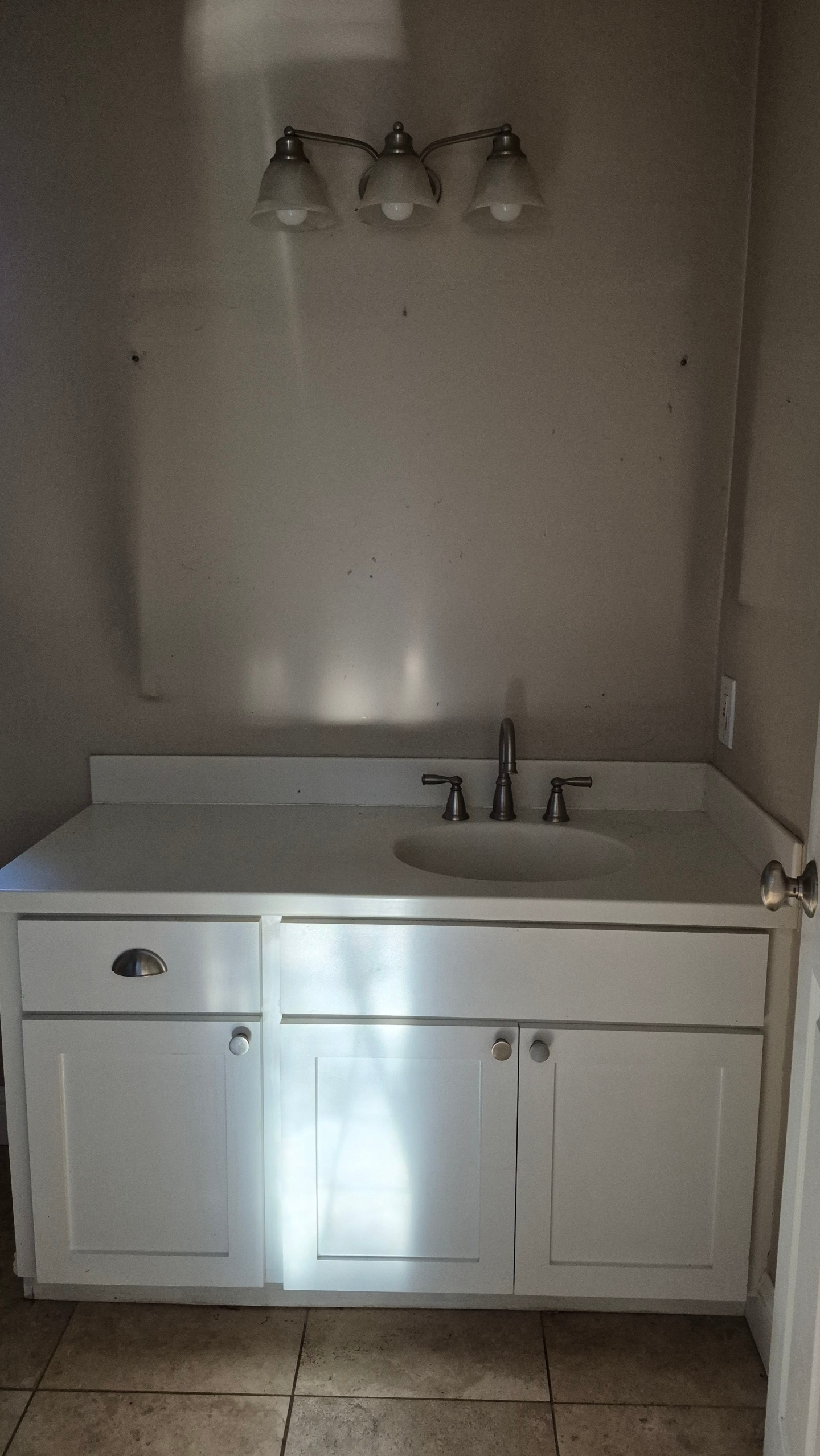 51″ x 22″ corian topped vanity$30, 3 bulb light $10 ( you detach and remove.)