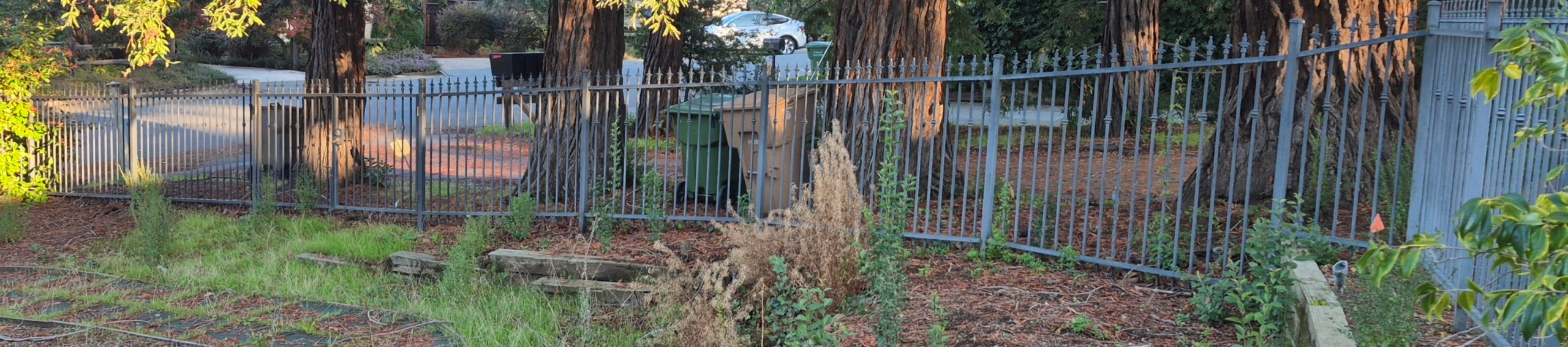 57 ft of sloping iron fence.58″ tall fence slopes 1″ per foot $3.50/ft $200 for all ( you detach and remove)