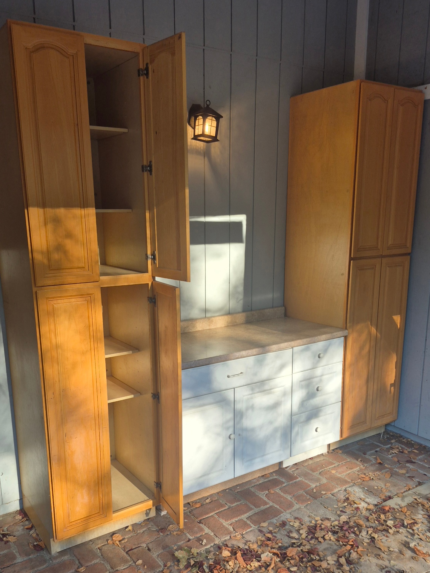 2@ 24x24x96 cabinets $20ea. 56″ lower cabinet with formica top $35 ( all you detach and remove)
