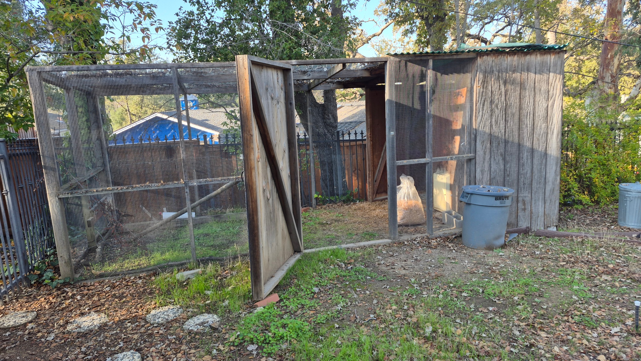 19’7″ x 7ft x 7ft tall all redwood chicken coop 45.5′ x 7’x 7′ shed at end. The materials new would cost you $900 to $1000 bucks to build this. Our price $250 ( you detach and remove)