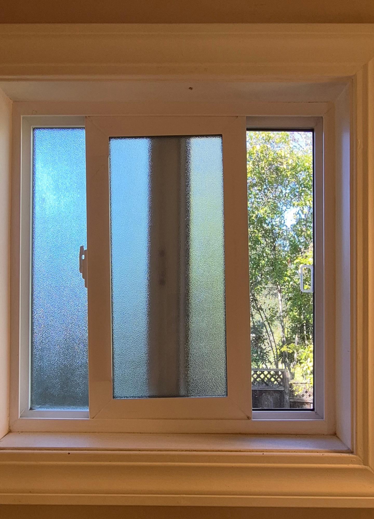Two 24″x 24″ obscure glass windows $22/ea or $40/both ( you detach and remove)