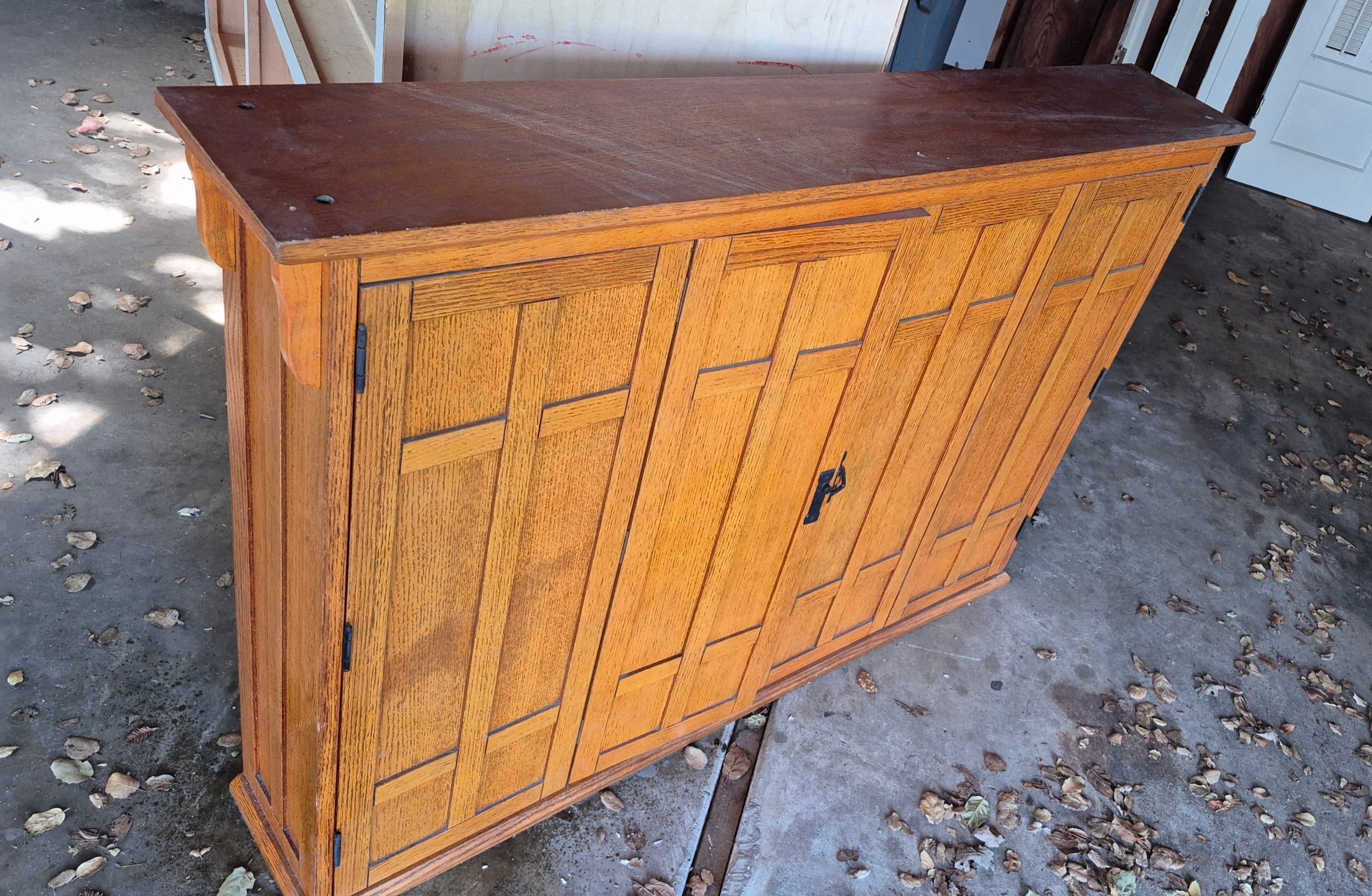 52.5 x 9x 37.5 tall oak wall cabinet perfect for bar or Dart board or whatever $20