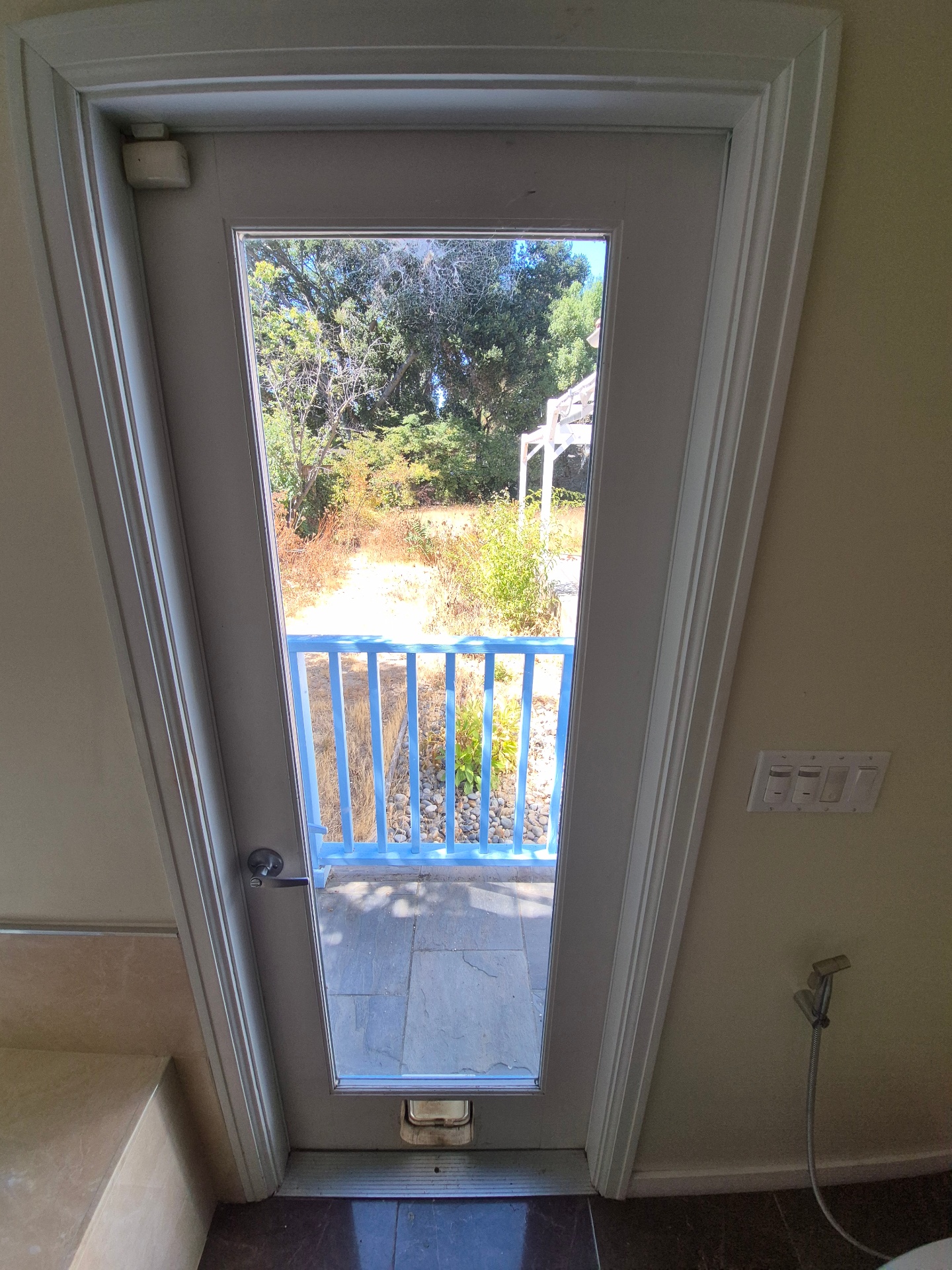 1.75x 30×80 dual glazed door with tempered glass, jamb & cat door $45( you detach and remove)