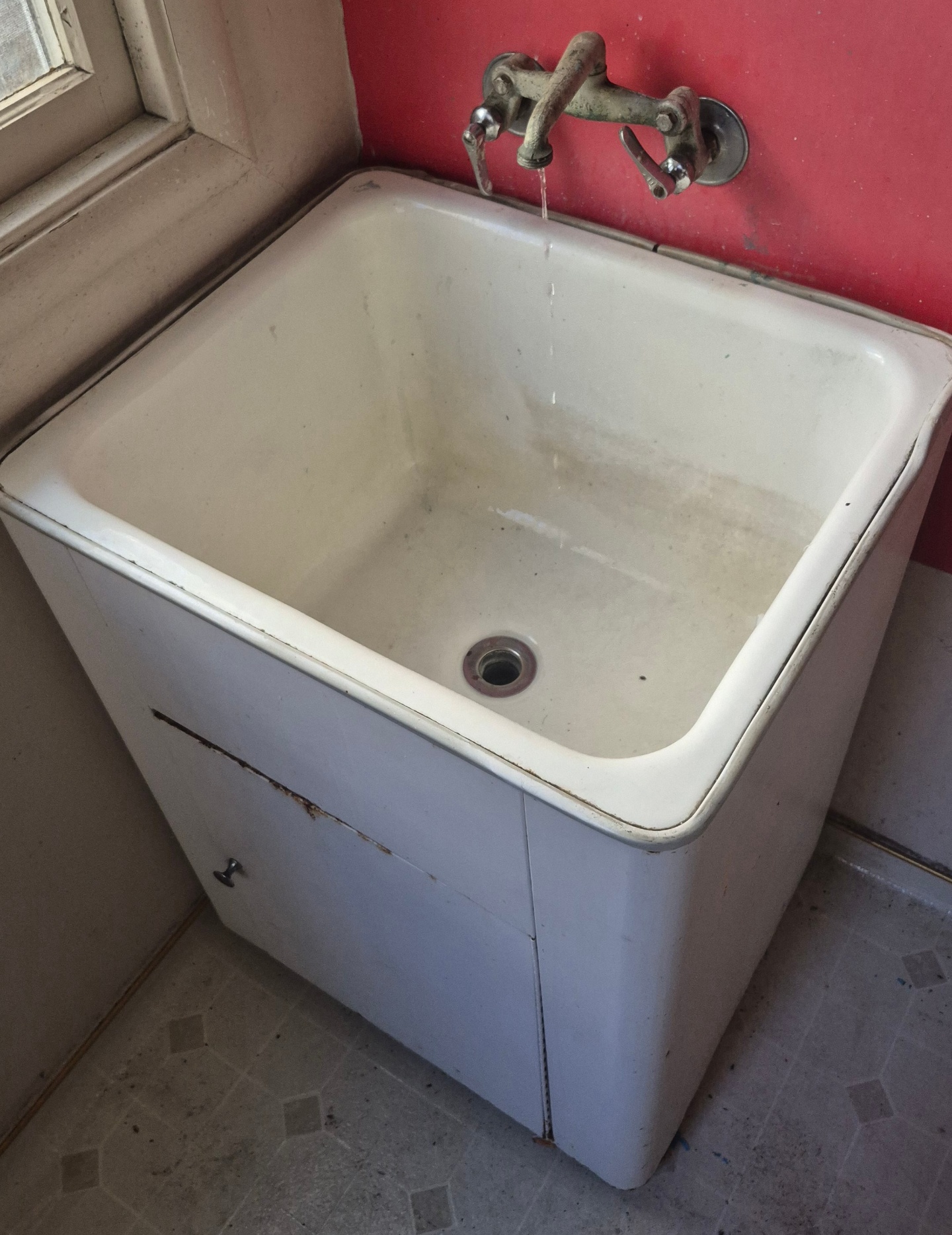 24 x21 x13 deep enameled laundry sink & cabinet $25 (you detach and remove)