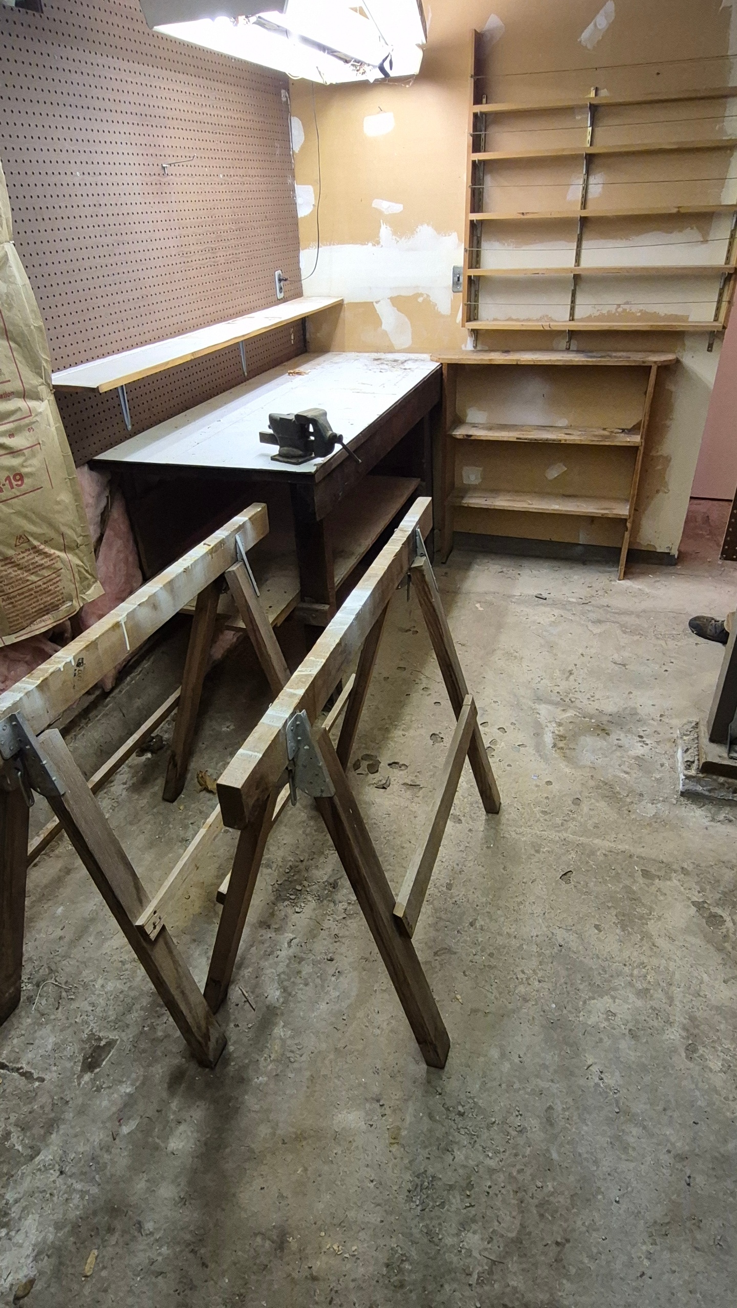 calling all workshoppers! two sawhorses $15pair, 28 x 67″ x 38 tall 2 legged workbench $15 (you detach and remove) Vice $9