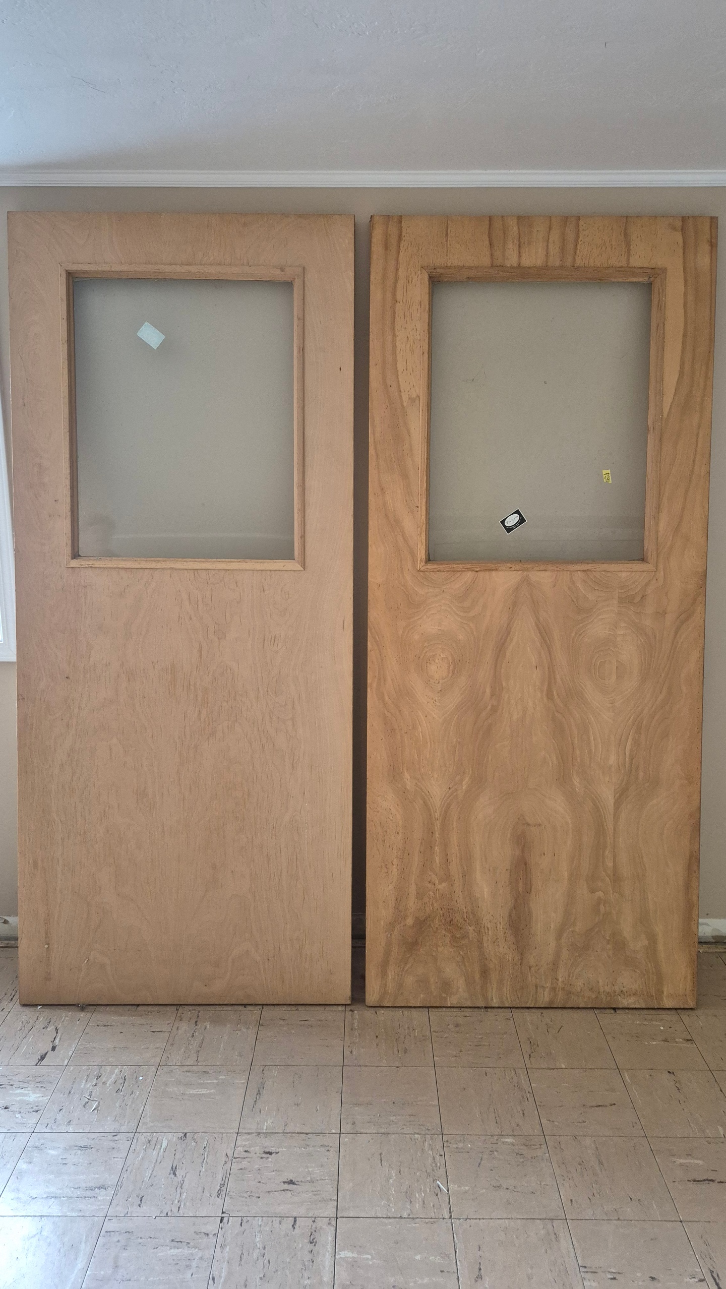 Doors are made by Fanlty Bros., Inc. from Los Angeles, California. Key details: 1 11/16 x 36 x 84″ solid wood birch top light door, 1/3 hr fire rated doors $55ea or get both for $100