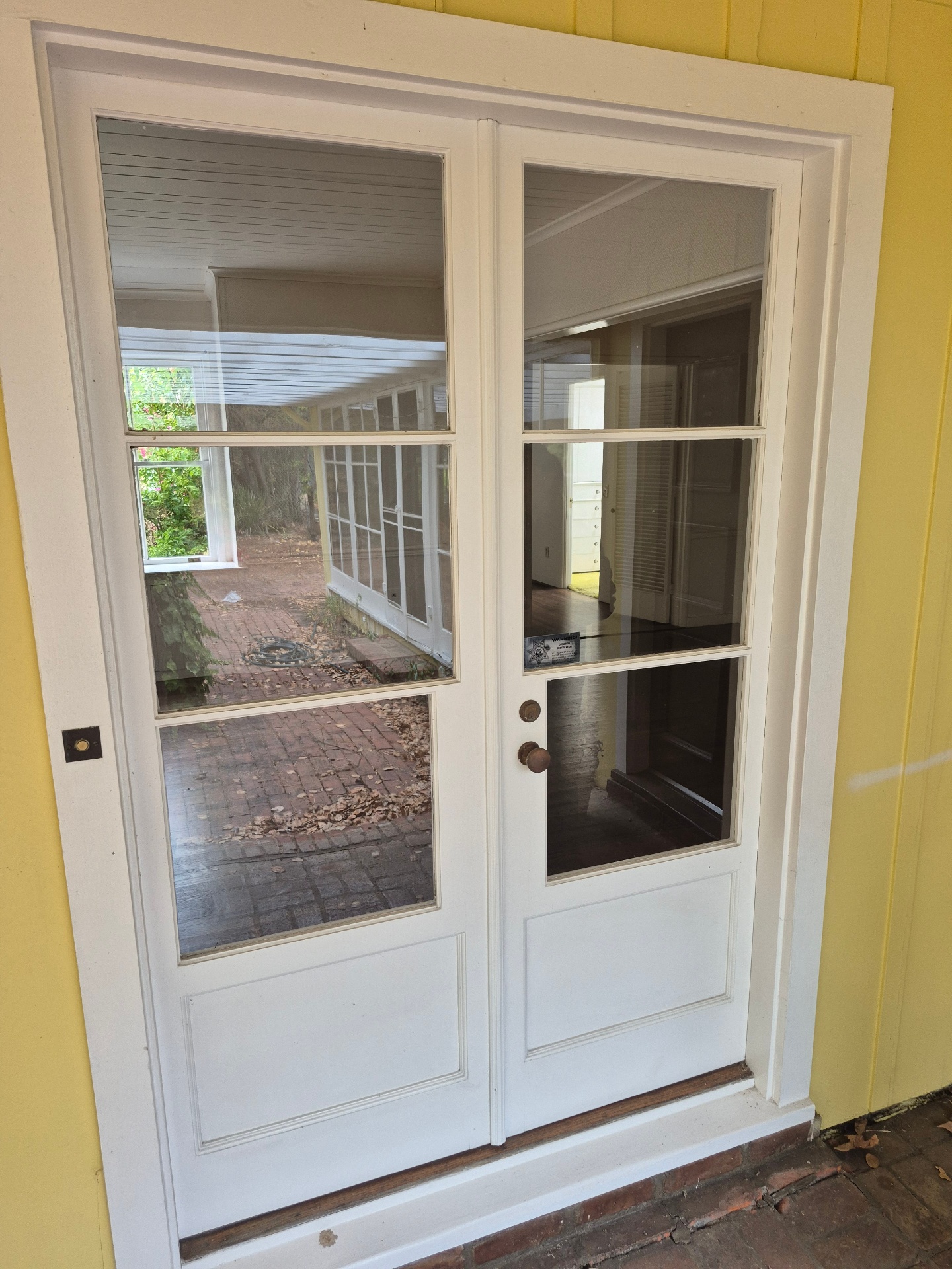 2 sets: 1.75in x 52.5 x 80 single glazed double french doors. $150 each (you detach and remove)