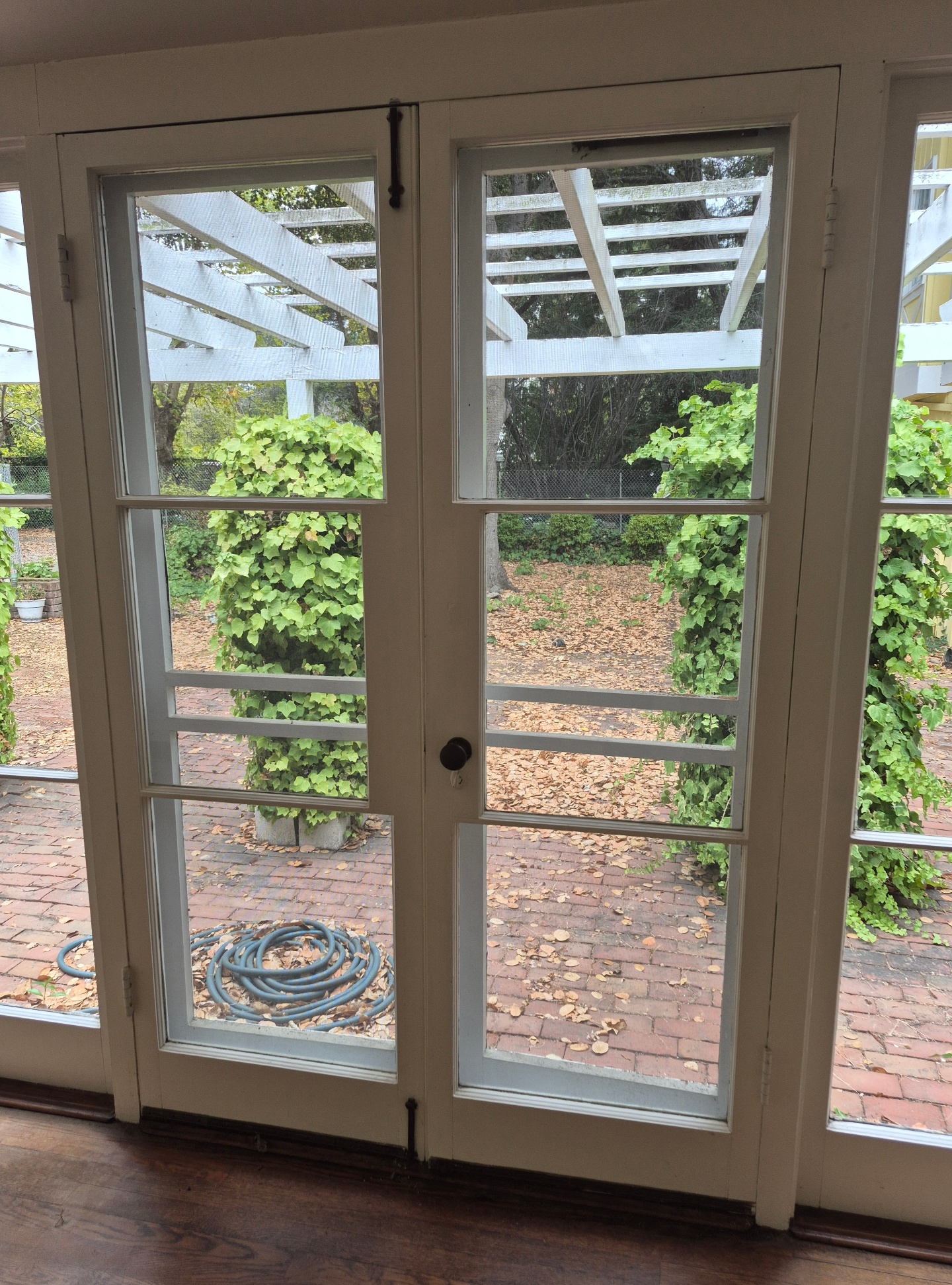 2@ 1.75in x 52.5 x 80 single glazed distinctive french doors. $125 each (you detach and remove). Double screen door $40.