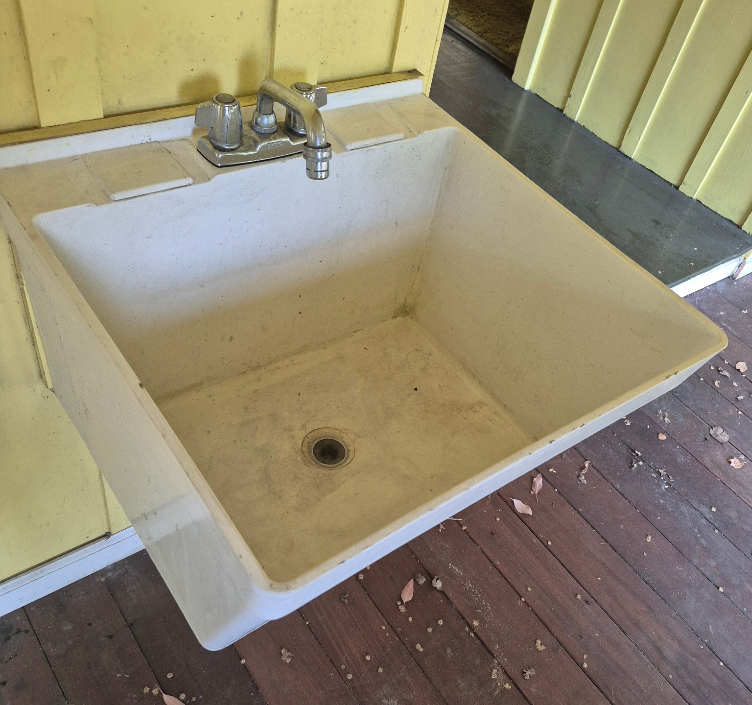 23 x 22 x14 deep plastic laundry tray $15 ( you detach and remove)