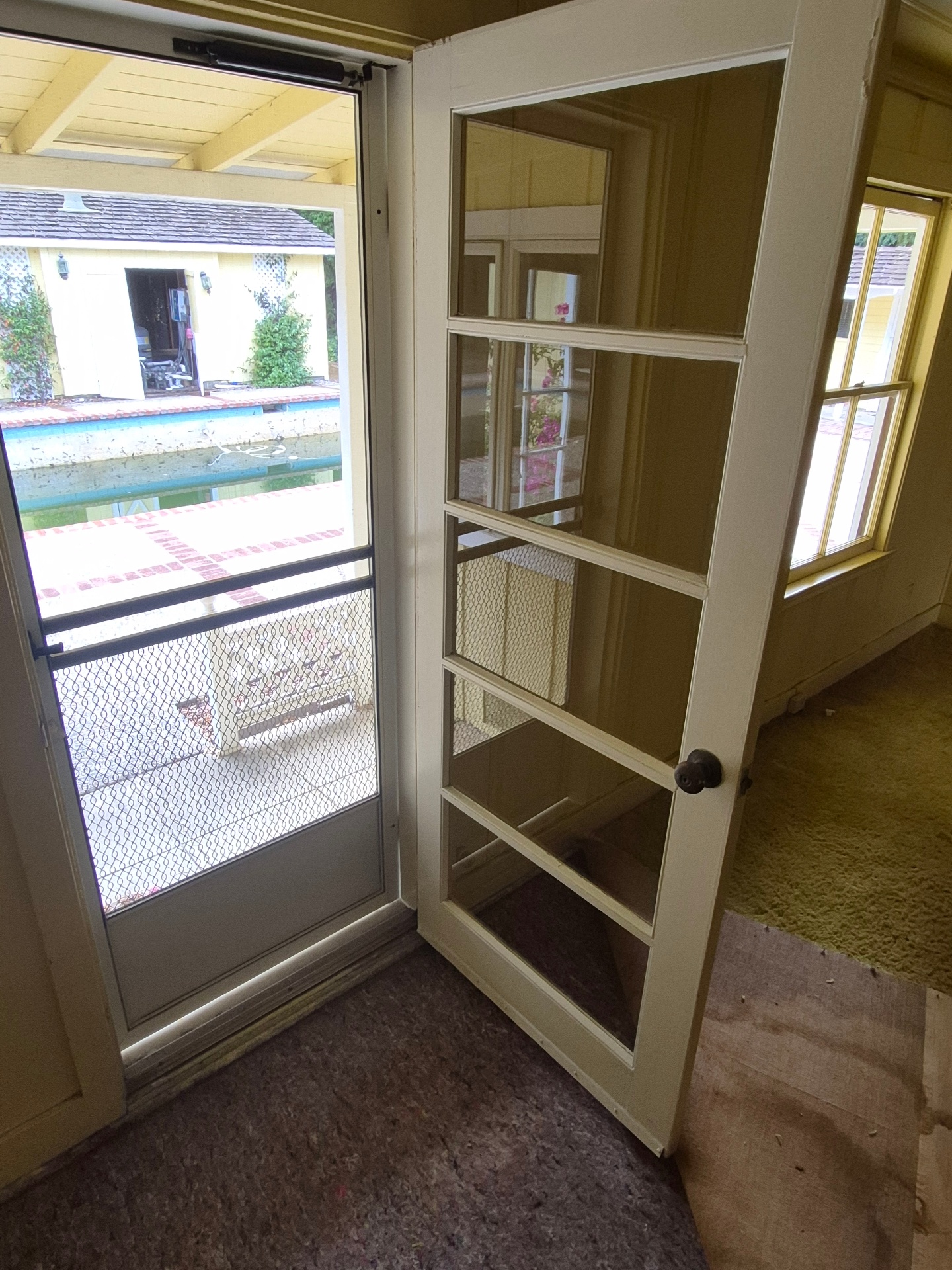 1 3/8 x 32 x 80 single glazed true divided light french door$65 32×80 aluminum screen door$20 ( all you detach and remove)