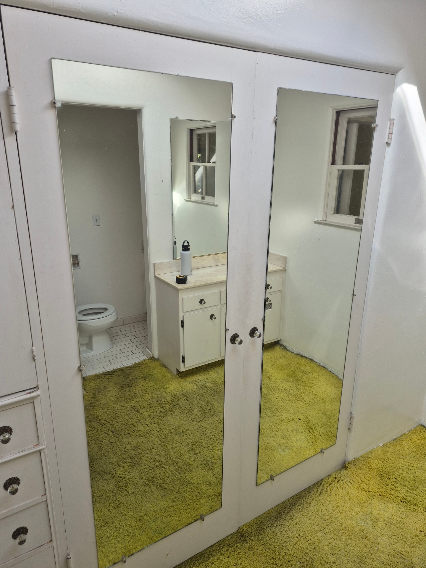 Mirrored wood double doors 1 3/8″ x 59.5 x80 $65 ( you detach and remove)
