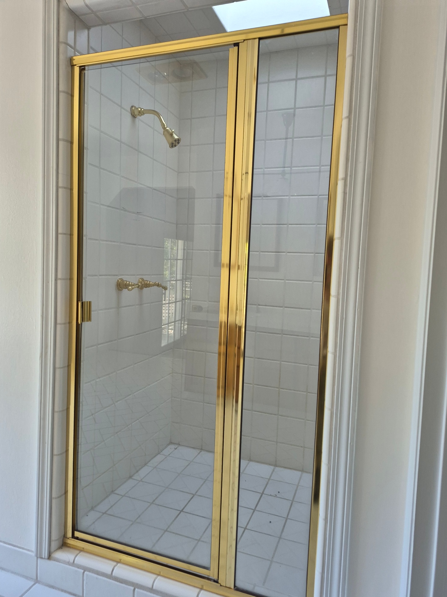 3/16x 22.5x 67.5 shower door with 12×69 side panel $25 Shiny brash shower head $12 Shiny brash shower valves $35: ( All you detach and remove)