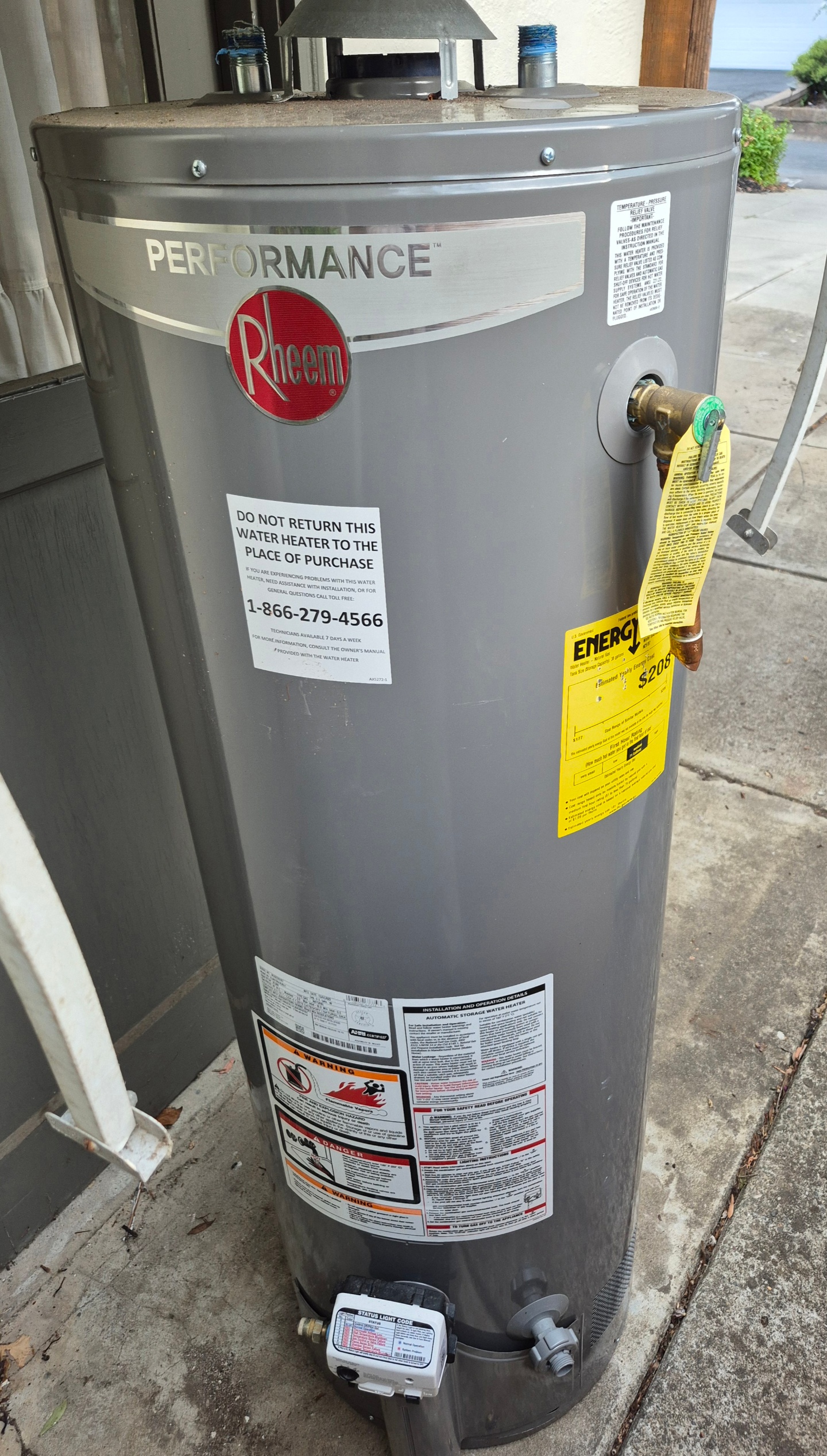 3 years old Rheem 40 gallon gas water heater $100. ( Already drained, detached and ready to load)