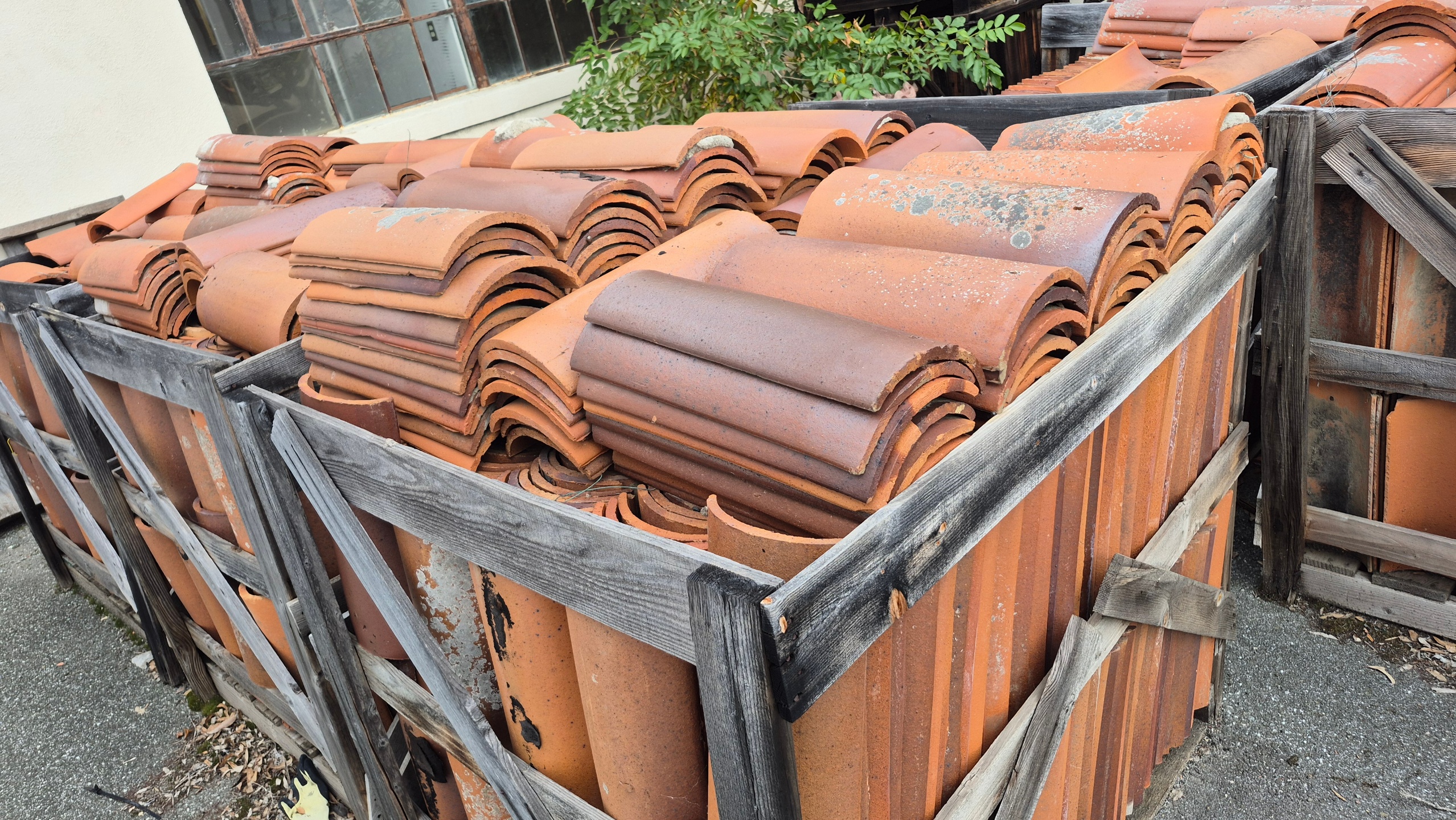 Approximately 7280 of 1933 vintage cap & pan mission style terracotta roof tiles 8×18″