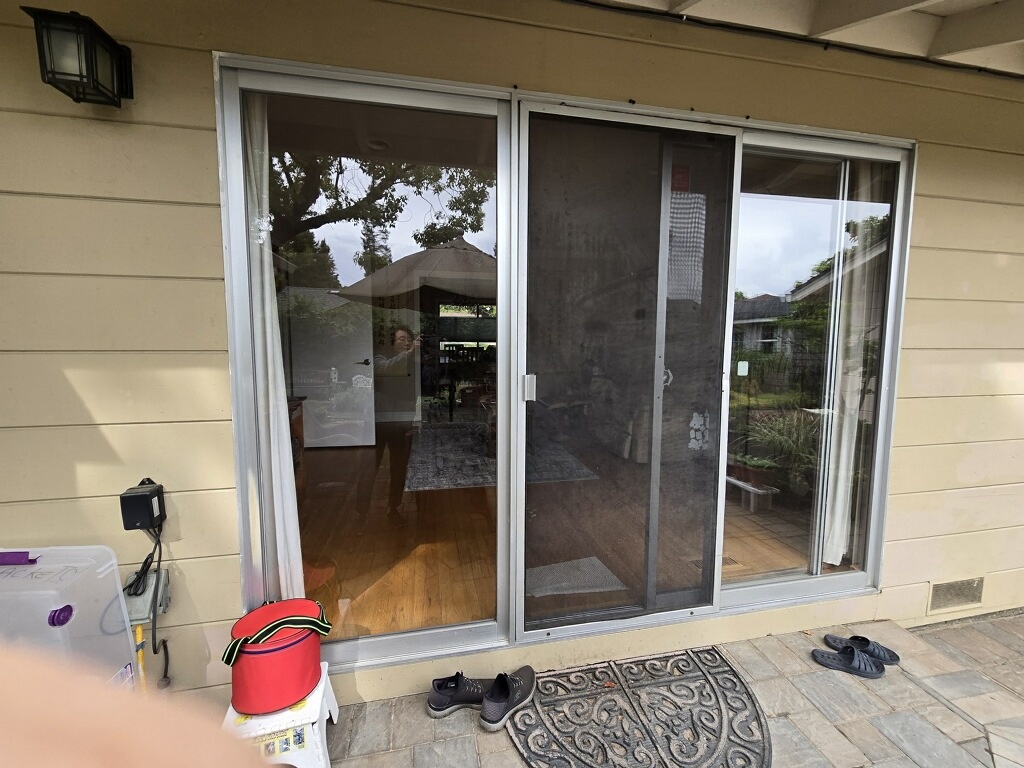 Located in los altos : 108×80 Single glazed aluminum patio sliding door: perfect for your shed, greenhouse or art studio! Client will remove for you first week of June $50