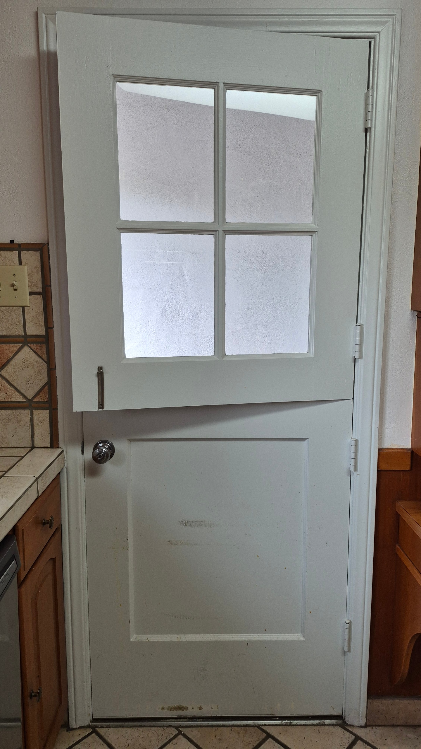 1 3/8 x 32″ x 80″ lovely LH dutch door with single glazed window: $125 you detach and remove